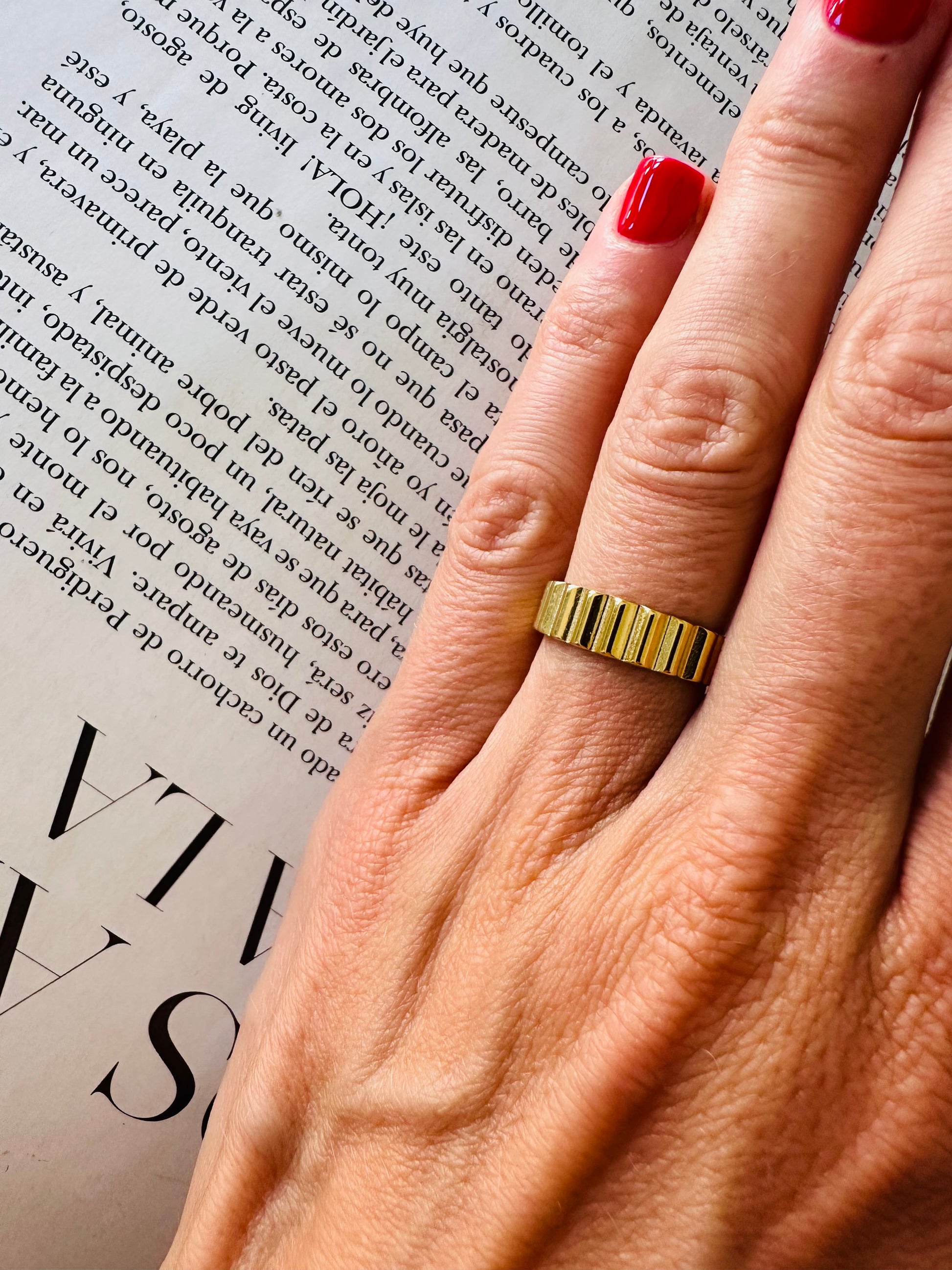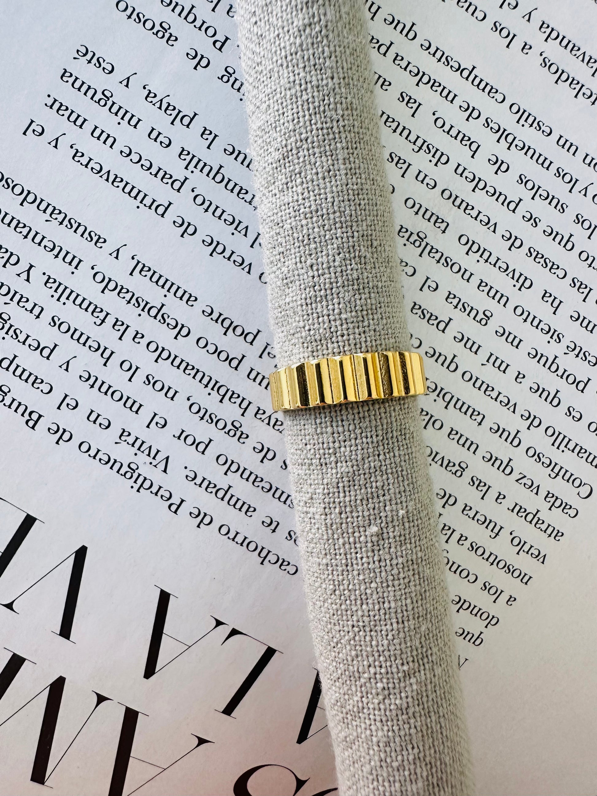 Material: Acero inoxidable, bañado en Oro 14k, resistente al agua.